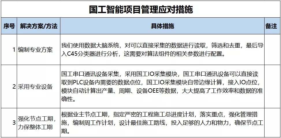 盡管項目實施存在諸多難點,但國工智能項目團隊能克服困難,以“精心策劃 科學施工”為施工宗旨,實現(xiàn)了智能制造平臺的各項目標,按時保質(zhì)完成了合同要求的所有項目。