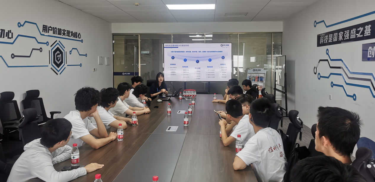 在參觀伊始,國(guó)工智能的人力行政總監(jiān)林海波先生熱情接待了來(lái)訪師生,圍繞公司展墻簡(jiǎn)要介紹了公司的核心產(chǎn)品、前沿技術(shù)、標(biāo)志性客戶案例以及發(fā)展歷程。林總監(jiān)特別強(qiáng)調(diào)了國(guó)工智能在知識(shí)產(chǎn)權(quán)保護(hù)方面所構(gòu)建的堅(jiān)實(shí)“護(hù)城河”,展現(xiàn)了公司在技術(shù)創(chuàng)新與市場(chǎng)競(jìng)爭(zhēng)力方面的深厚底蘊(yùn)。
