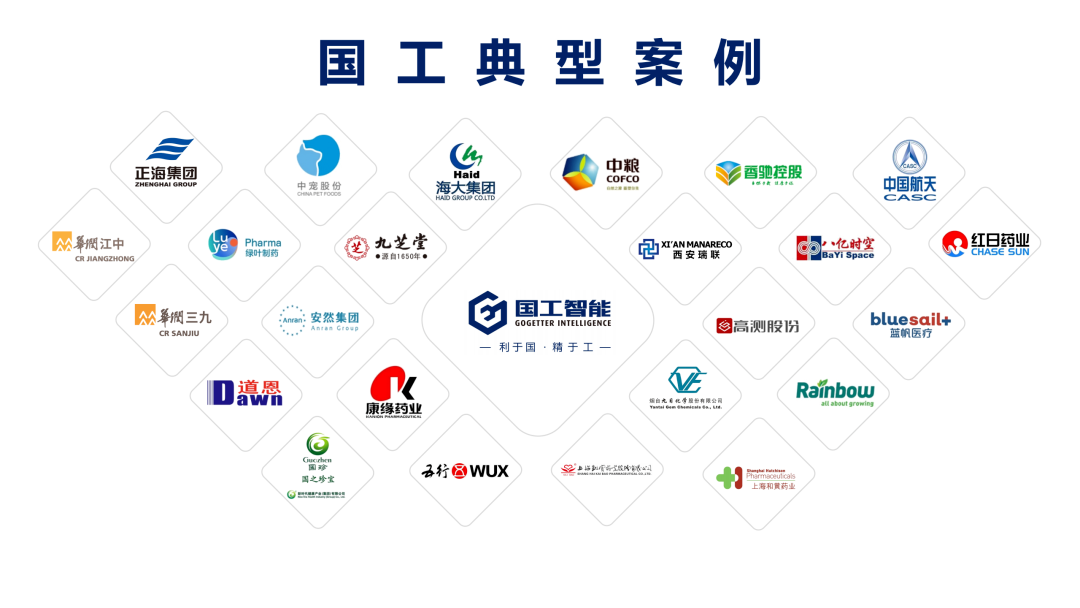 國工智能在化工、醫(yī)藥、食品、飼料、新材料等行業(yè)深耕已久,客戶遍布全國,已成功為海大集團、華潤三九藥業(yè)、康緣藥業(yè)、豐原集團、道恩集團、九目化學、藍帆醫(yī)療、新時代健康產業(yè)集團、安然納米集團等客戶提供智能制造落地服務。