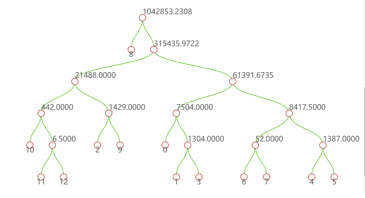 通過國工數據大腦分析平臺分析的聚類結果可以看出,如果想看聚2類找倒數第二行,0到5都是1分為一類,6為0作為另一類。如果想看聚3類找倒數第三行,0、1、3都是1,分為一類,2、4、5都是2作為第二類,6為0作為第三類。依次類推。