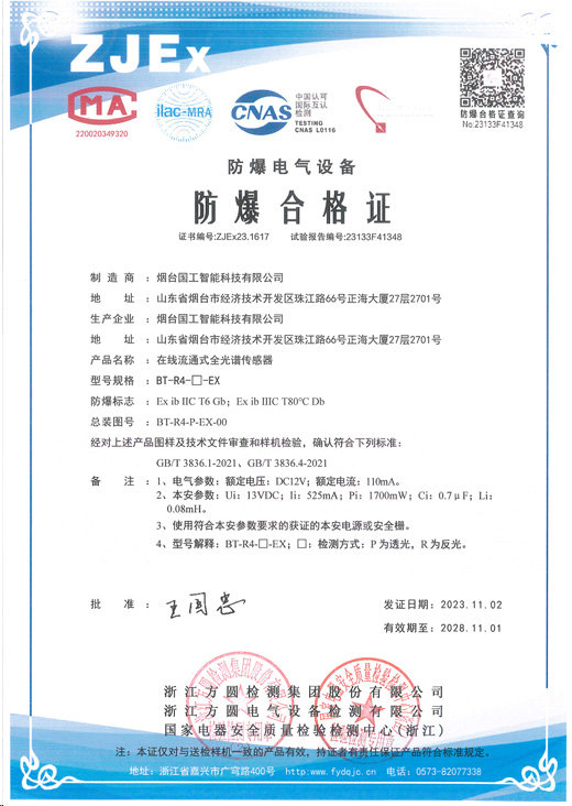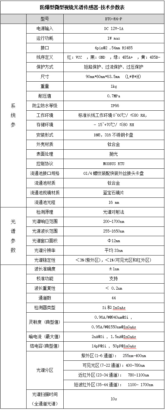 根據客戶現場情況,我們采用的是防爆型視鏡光譜傳感器。防爆型微型視鏡光譜傳感器對于傳統的視鏡、光譜傳感器分離的產品,該傳感器具有安裝更加方便,受環境干擾更小,使用安全性更高特點,并且不受游離堿和溫度等因素的影響,在檢測有效氯濃度的同時也能檢測游離堿濃度,更有利于實時準確判斷反應進度和反應終結點。