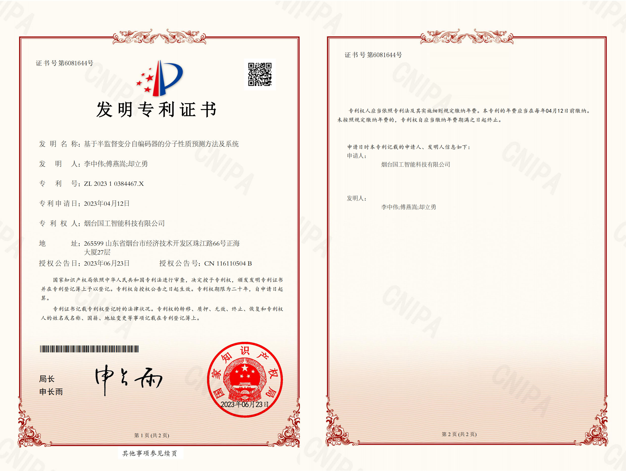 近日,國工智能新添國家知識產(chǎn)權(quán)局頒發(fā)的一項發(fā)明專利證書“ 基于半監(jiān)督變分自編碼器的分子性質(zhì)預(yù)測方法及系統(tǒng)”,這有力體現(xiàn)了國工在人工智能技術(shù)領(lǐng)域的核心競爭力。